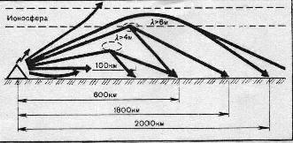 УКВ радиоволны распространяются прямолинейно, как луч света, то есть в пределах прямой видимости антенны. Мачту с передающей антенной стараются делать как можно выше. Башня Останкинского телецентра в Москве высотой более 540 м обеспечивает зону уверенного приема на расстоянии 120 – 130 км.
