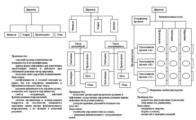 - линейно-функциональная; дивизиональная; матричная.
