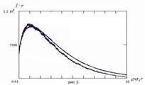 Полученные результаты приведены на графиках. На рисунках 1-2 изображены графики для плотности энергии, на рисунке 3 – для потока. Верхняя кривая – теоретический расчёт. Нижняя – результаты метода Монте-Карло. Расхождения в области больших расстояний обусловлены тем, что теоретический расчёт был произведён для безграничной среды.