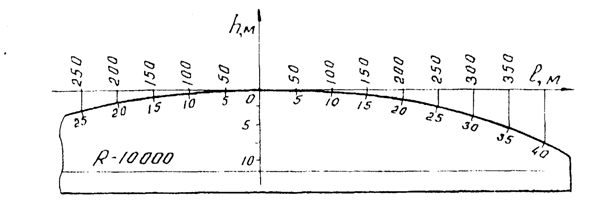 Минимальный радиус выпуклых кривых определяю! из условия видимости поверхности дороги:
