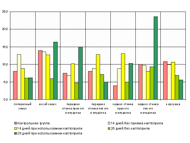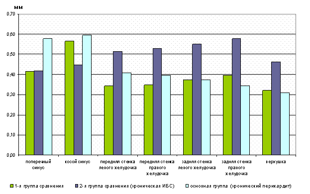 Однако, в зависимости от участка перикарда, выявленные достоверные изменения были разнонаправленными (диаграмма 6).