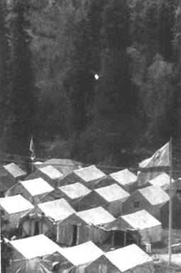 Да и на что смотреть? Ни травки, ни зелени какой, скала да полынь — вся природа. Что и говорить, к самому началу поспел, к сотворению мира. Посидеть надо с дороги? Пожалуйста, бери пилу, топор, колоти столы, скамейки из горбыля. Вздремнуть захотелось с устатку? Тоже можно. Кровать только поставь сначала, матрац получи. Где ставить? Да вот сам смотри, где и что разместить, ты первый, кивать не на кого. Крыша над головой понадобилась? Готовь стойки, вяжи оттяжки, палатку у прораба Саши Пятерева спроси, пока он на правом берегу за всех и вся.