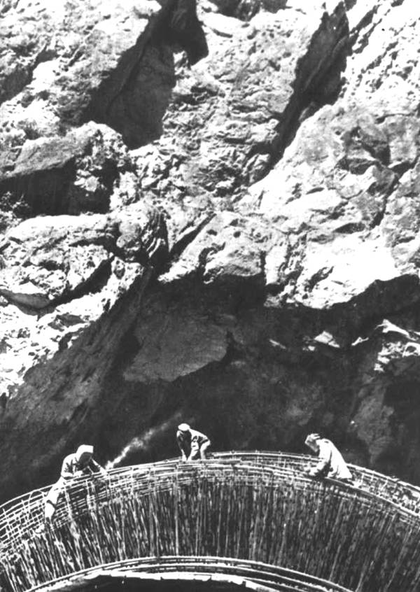 А вся работа далеко впереди. Да и где работать? Где разместиться котловану, подъездным дорогам, всем механизмам, движимым и недвижимым, всем коммуникациям — энергии, связи, воды и воздуха, всем службам и подсобкам, если ширину жизненного пространства составляют три метра двадцать сантиметров бульдозерного ножа? Куда деть изыскателей с их разведочными штольнями и буровыми по всем ярусам? Все нормальные стройки начинаются с изысканий. На Токтогульском створе ситуация складывалась явно исключительная — начало стройки совпало с началом изысканий и проектирования. Обычно стройки подобного масштаба развертывают боевые порядки по горизонтали, охватывая подчас десятки километров. А здесь нет места даже для котлована, вот ситуация: для того чтобы возвести плотину, здание ГЭС, надо прежде всего отвоевать место для этих сооружений! Если отвести Нарын, освободится русло. Но куда отвести, в скалу? Вот именно, больше некуда, надо бить обводной тоннель. Но только ли для реки? Нужны транспортные тоннели. На разных уровнях. Стройка по вертикали! В несколько этажей. Целые строительные армии будут висеть друг над другом, ежечасно решая невозможные задачи по координации своих действий. Камень спихнуть, с верхних отметок и то проблема. Ведь он свалится на голову соседа! Да и об этом ли сейчас думать? Вот задача — как вообще подняться на склон? Как хотя бы дотронуться до левого берега, воистину чем не место, где еще не ступала нога человека? Нужна какая-то специализированная служба, эдакое альпинистско-монтажное управление, каких еще никогда не бывало на стройках страны. Где их взять, таких спецов? Откуда выписать?