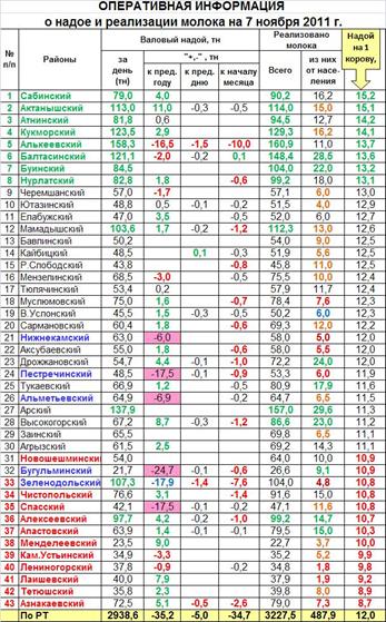 О надое и реализации молока по районам РТ на 07.11.2011 г. 25