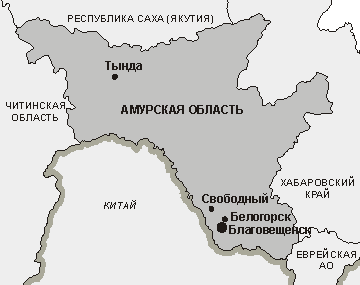 Амурская область расположена на юго-востоке Российской Федерации и входит в состав Дальневосточного федерального округа. Граничит на юге с Китаем, на западе - с Читинской областью, на севере - с Якутией и на востоке с Еврейской автономной областью и Хабаровским краем.