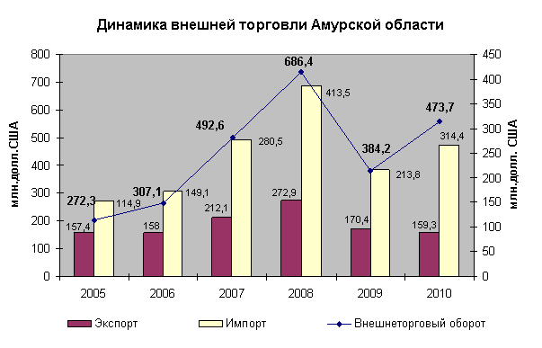 Амурская область имеет устоявшиеся связи с КНР и относится к регионам с высокой степенью экспортной ориентации на Китай. На его долю приходится более 83% всего внешнеторгового оборота.
