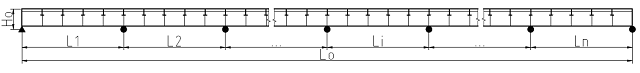 В качестве обобщенной схемы конструкции принято неразрезное металлическое пролетное строение (рис.1), имеющее n(³ 2) пролетов с длинами Li и общей длиной L0. Длина пролетов задается в исходных данных и определяется заранее, исходя из гидрогеологических условий местности и подмостового габарита.
