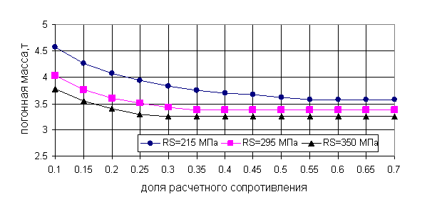 4. Получены зависимости массы пролетных строений от доли расчетного сопротивления, выделяемой на восприятие местного действия временных и постоянной нагрузок.