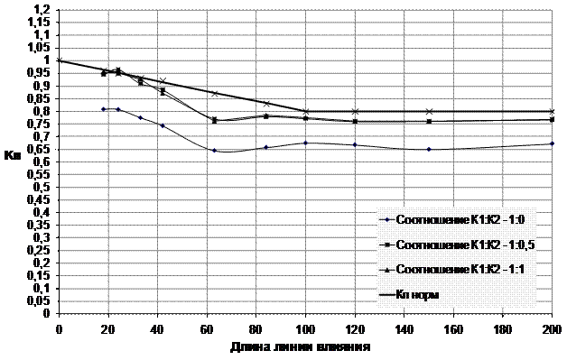 Для каждого вида линий влияния строится зависимость величины Кп от длины линии влияния – Кп(l).
