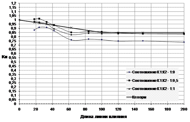 Кп норм(L) = 1 - 0,001*(L1+ L2), но не менее 0,7. (2)
