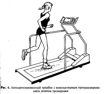Методы срочной информации. Предназначены для получения преподавателем и занимающимися с помощью различных технических устройств (тензоплатформы, электрогониометры, фотоэлектронные устройства, свето - и звуколидеры, электромишени и др.) срочной и преламинарной информации после или по ходу выполнения двигательных действий соответственно с целью их необходимой коррекции либо для сохранения заданных параметров (темпа, ритма, усилия, амплитуды и т. д.). Так, например, в настоящее время в физическом воспитании и спорте широко применяются различные тренажерные устройства (велоэргометры, беговые дорожки, гребной тренажер «Concept II» и др.), оборудованные встроенными компьютерами, управляющими системой регулирования нагрузки.(рис 6)