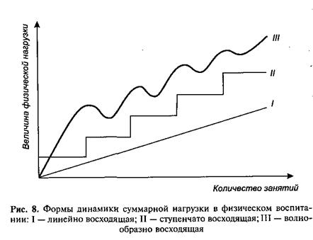 Закономерности воспитания силы, быстроты, выносливости и других физических качеств также требуют строгой последовательности воздействий физическими упражнениями. Развитие каждого физического качества происходит в результате адаптационных функциональных и морфологических изменений в организме. Это предусматривает строгую последовательность в предъявлении повышенных требований к его функциям. Для этого используются физические нагрузки более высокие, чем те, к которым организм привык.