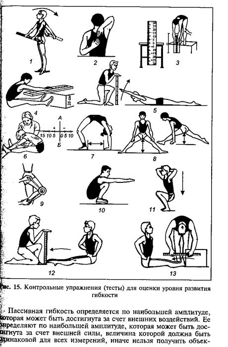 Основными педагогическими тестами для оценки подвижности различных суставов служат простейшие контрольные упражнения (рис. 15).