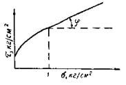 УГОЛ ВНУТРЕННЕГО ТРЕНИЯ — угол наклона прямолинейной части диаграммы сдвига грунта к оси нормальных давлений (рис. 14). При давлении > 1 кг/см2 У. в. т. грунтов — практически величина постоянная. У. в. т. является показателем сил трения в грунте, возникающих при явлениях сдвига и оказывающих сопротивление сдвигу.