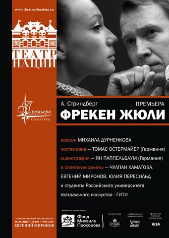 Здесь действие перенесено в современную Россию, для чего Михаилом Дурненковым, одним из самых известных и востребованных отечественных драматургов нового поколения, написана (специально для Театра Наций) новая сценическая версия произведения Стриндберга, в которой сохранены все сюжетные линии, а диалоги насыщенны современной лексикой. В центре спектакля, как и у Стриндберга, — любовный треугольник: Фрекен Жюли — слуга Жан — служанка Кристина, которых играют ведущие российские актеры — Чулпан Хаматова, Евгений Миронов, Юлия Пересильд. Сложные взаимоотношения их героев, выплетать которые Остермайер великий мастер, лежат в основе нового спектакля, в котором будет «сто пудов любви» и столько же ненависти.