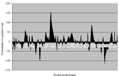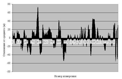 Отдельно хочется выделить измерения, выполнявшиеся в гг. в районе древнего города Калидон. Работы на данном памятнике носили характер "стационарной съемки" и проводились с целью привязки участков, на которых выполнялась магнитная съемка. Общая территория, на которой проводились исследования, имела размеры около 1000х1000 м. Рельеф носил сложный характер – памятник располагался на нескольких холмах. Общий перепад высот достигал величины около 100 м. Значительная часть территории была покрыта зарослями кустарника и оливковыми садами, что ограничивало прямую видимость и требовало большого числа реперных точек при проведении геодезических работ не GPS-средствами. Параллельно с нашей группой работала группа греческих геодезистов, составлявших общий топографический план памятника. Благодаря этому появилась возможность сопоставить результаты, полученные при помощи простого GPS-приемника, работающего в обычном (не-дифференциальном) режиме, и результаты высокоточной съемки, выполнявшейся при помощи лазерных тахеометров. Для горизонтальной плоскости сравнение измерений расстояний при помощи тахеометров и при помощи GPS для дальностей 10-500 м показало, что средняя величина ошибки измерения расстояния составляет 2 м, максимальная 4,9 м. Для GPS-измерений усреднение координат проводилось по выборке из 15-20 измерений, выполненных в случайные моменты времени (табл. 4.3). Полученные результаты позволяют сделать вывод о возможности применения "стационарной съемки" в недифференциальном режиме для составления планов в горизонтальной плоскости масштабов до 1:3000. Средняя ошибка позиционирования составляет в этом случае около 0,5 мм в масштабе карты.