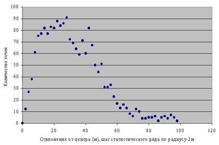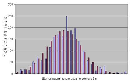 При осуществлении подобных преобразований средствами ГИС автоматически выдаются оценки усредненных ошибок положения для опорных точек, которые можно рассматривать как оценку точности исходного картографического материала, однако здесь приходится сталкиваться с определенными трудностями. При наличии всего трех опорных точек можно провести точное линейное преобразование, так что ошибка привязки, выдаваемая ГИС, будет равна нулю. При большом количестве опорных точек ("насыщение"), равномерно распределенных по территории, добавление каждой новой точки уже не будет существенно влиять на ошибки привязки остальных. При количестве точек более трех, но менее "насыщения" добавление каждой новой точки может значительно влиять на величину ошибок остальных точек, и в этой ситуации величину ошибок привязки, рассчитываемых в ГИС, уже нельзя рассматривать как оценку ошибок карты. Вышеприведенные замечания в особенности относятся к старым картам. Их использование в археологической ГИС необходимо для поиска обозначенных на них объектов, которые отсутствуют на современной карте и следы которых слабо выражены на местности. Для определения радиуса поиска необходимо иметь оценку точности старой карты, то есть знать, в пределах какой области на современной карте может находиться точка, обозначенная на старой. Число опорных точек для старой карты зачастую и попадает в область более трех, но менее "насыщения", что связано с трудностью локализации современных объектов по старой карте и с недостаточным количеством GPS-измерений. В связи с этим возникает необходимость более детально изучить распределение ошибок карты. Так как построение карт не во всех случаях опиралось на точную сеть триангуляции, ошибки, в том числе и связанные с человеческим фактором, могут носить весьма неравномерный характер в пределах расстояния между современными опорными точками.