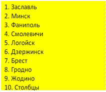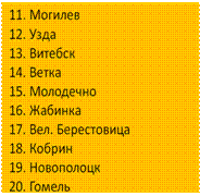 Рейтинг городов Беларуси. В 2008 году белорусскими учеными-экономистами был выполнен проект по формированию первого в Беларуси рейтинга городов.