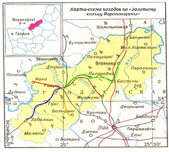 Члены гимназического туристического клуба «Робинзон» ежегодно совершают водные и пешие походы по «Золотому кольцу Вороновщины» (Карта-схема), ведь наш район бесконечно красив и удивителен, в каждом его уголке есть что-то уникальное.