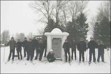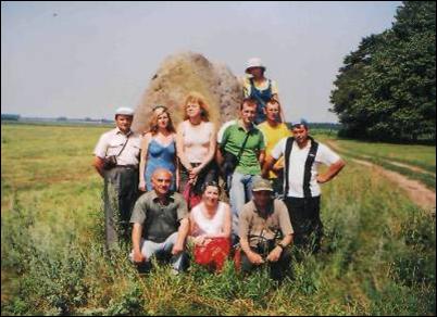 Фото 9. Участники экспедиции у культового камня в окрестностях д. Плики