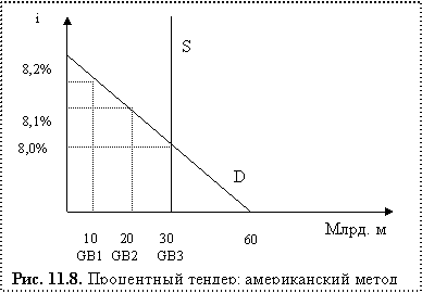 Недостаток голландского аукциона заключается в том, что некоторые (особенно мелкие покупатели), в надежде на более низкую цену отсечения подают заявки с самого начала, порой, не учитывая в достаточной степени, собственную ликвидность. Эта практика искажает функционирование рыночного механизма, и для преодоления этого недостатка применяется американский аукцион (рис. 11.8).