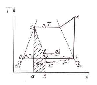 – энтропия жидкого хладагента в насыщенном состоянии при температуре Т, Дж/(кг×К); S¶ – энтропия хладагента на выходе из КТ при температуре Т0, Дж/(кг×К).
