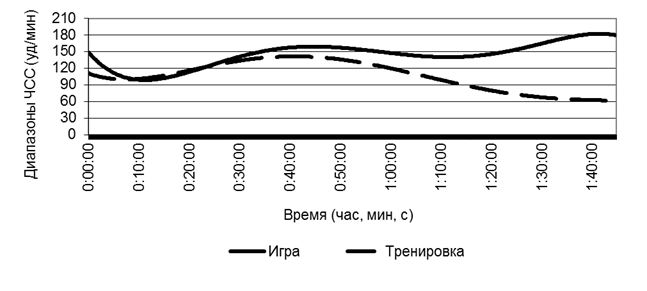 Таким образом, результаты исследования подтверждают необходимость учета выявленных особенностей нагрузки соревновательного процесса, его специфики у игроков разных амплуа и динамики как в течение матча, так и в связи с изменением уровня соревнований при построении учебно-тренировочного процесса и, прежде всего, его интенсификации на этапах подготовки к соревнованиям.