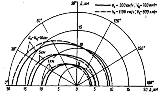 Минимальные дальности пуска ракеты при ошибках пуска 30—50° по маневрирующей цели с перегрузками 7—8 на ракурсах 90° для высот 1—8 км составляют 0,6—1,5 км соответственно.