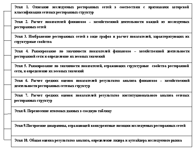 Вместе с тем анализ приведенных источников показывает еще недостаточную разработанность в теоретическом и практическом плане механизма формирования и развития ресторанных сетевых структур в Российской Федерации. Отсутствуют работы по такому важному аспекту деятельности этих организаций как методика оценки их конкурентоспособности и эффективности.