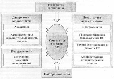 С учетом всего сказанного выше, можно сделать вывод: к обеспечению безопасности информационных технологий организации (и в определенной степени к управлению ее информационной безопасностью) должны привлекаться практически все сотрудники, участвующие в процессах автоматизированной обработки информации, и все категории обслуживающего АС персонала.