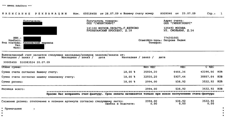 При возникновении расхождений, поставщику на адрес электронной почты направляется письмо с просьбой предоставить исправленные документы в ЦО компании.