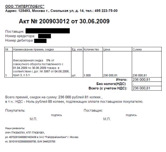 6. Акт и счет-фактура на премии / Акт и счет-фактура на услуги