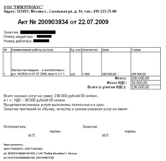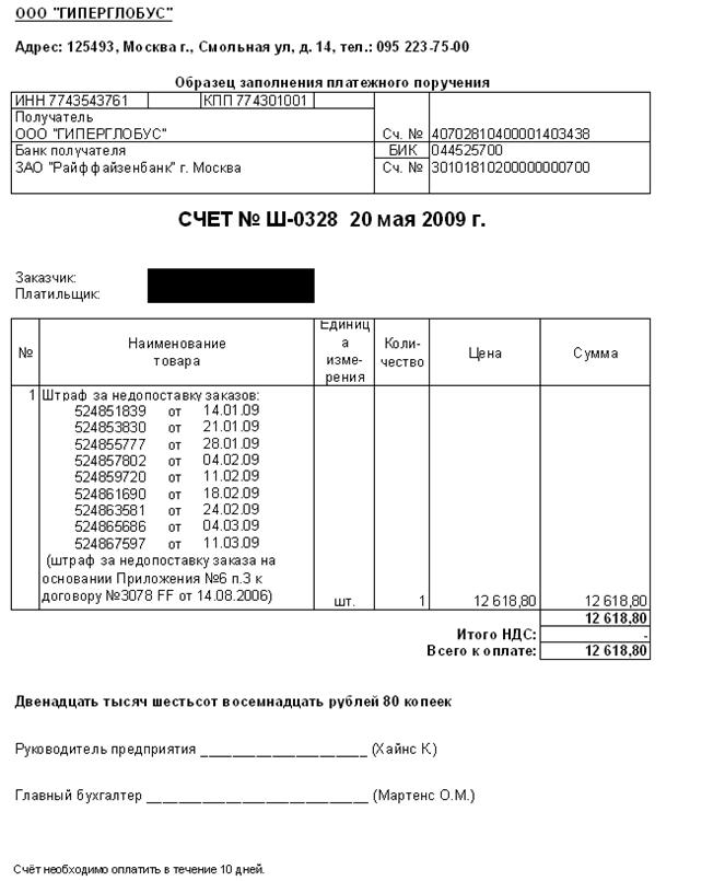Акт и счет-фактура на штраф выглядит также, как и на услуги.