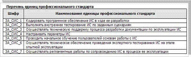 · Перечень единиц профессионального стандарта (см. Рис 2.).