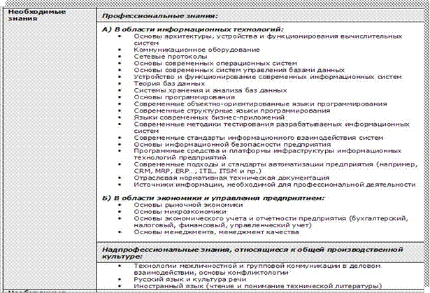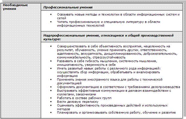 · Требования к практическому опыту работы;
