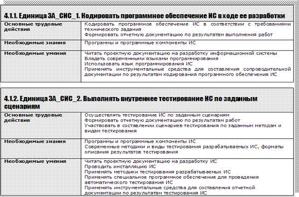 Каждая единица профессионального стандарта имеет свой шифр и наименование и содержит описания: