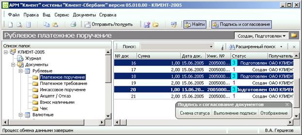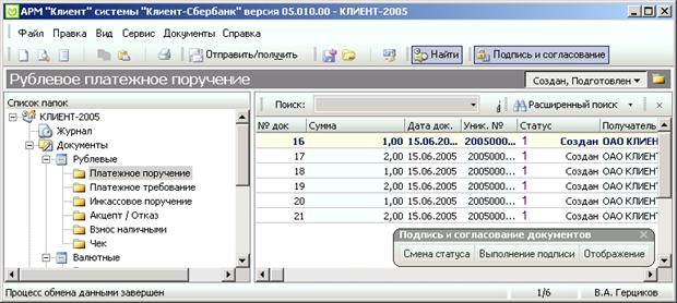6.3.Отправляем в банк с помощью АС «КЛИЕНТ-СБЕРБАНК».