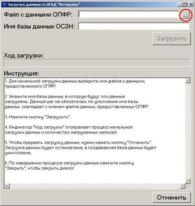 10.1. Работу с данными ОГБД «Ветераны» начинаем с загрузки файла данных, полученный от ОПФР, в дальнейшем работаем с этой базой.