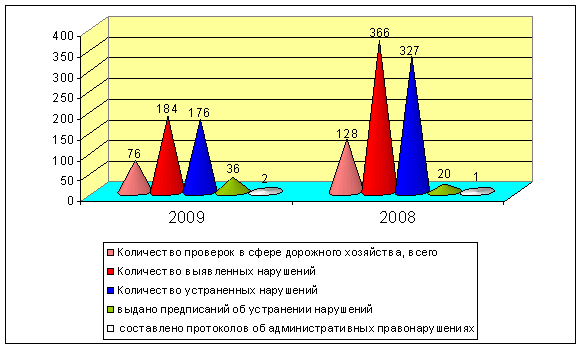 Управлением совместно с другими контролирующими органами проведено 49 совместных проверок. В ходе данных проверок выявлено и пресечено 147 различного рода нарушений в сфере автомобильного транспорта и дорожного хозяйства.
