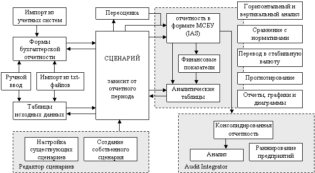 В основу работы системы Audit Expert положено приведение бухгалтерской отчетности за ряд периодов к единому сопоставимому виду, соответствующему требованиям международных стандартов финансовой отчетности.