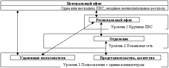 Практика создания и применения автоматизированных информационных технологий в страховой деятельности подтверждает целесообразность эксплуатации распределенной информационно-вычислительной сети или многоуровневой сети, предусматривающей наличие единой технологической платформы, с общей информационной базой для взаимодействия как с файл-сервером, так и с другими ресурсами сети.