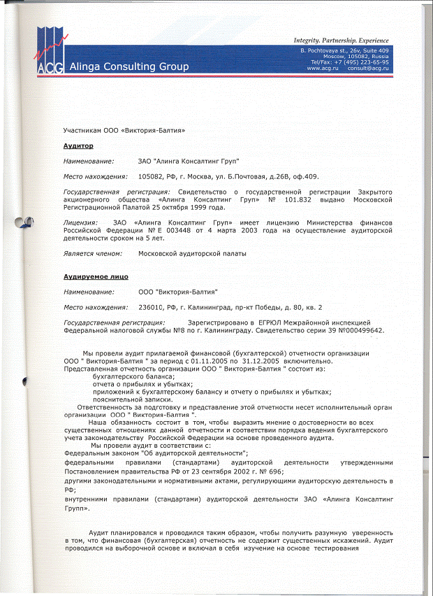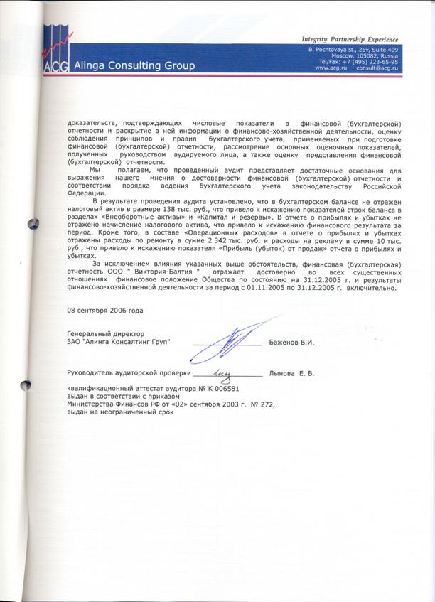 Бухгалтерская отчетность и учетная политика Балтия» за 2005 год