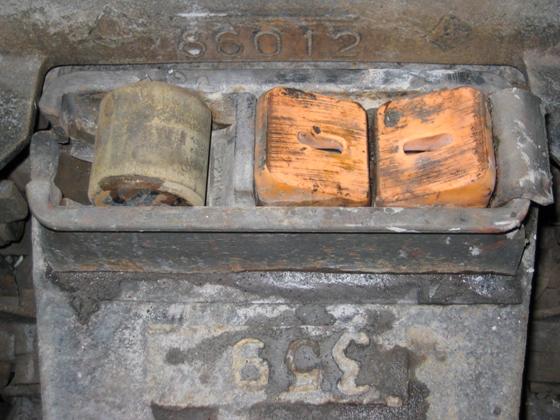 После подъемки вагонов и выкатки тележек было установлено, что на ответной части наблюдаются следы контакта с износостойким колпачком скользуна, при этом величина износа на ответной части составляла до 0,1 мм. Кроме этого у ответных частей скользунов, установленных на полувагоны №№ и , были отмечены следы контакта с роликом.