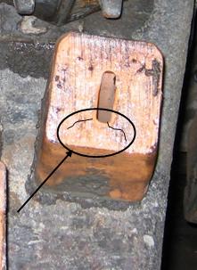 При подетальном осмотре элементов упруго-роликового скользуна, было отмечено, что все детали в основном находились в исправном состоянии (рисунок 1). Однако, у двух упругих элементов (вагон № тел. № 000 и 16284) были обнаружены по две трещины, направление которых показано на рисунке 2.