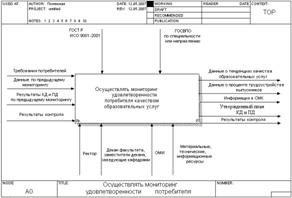 Система мониторинга в ВУЗе рассматривается как необходимый элемент внутривузовской системы обеспечения качества. Эта система включает лабораторию мониторинга, встроенную в систему управления, информационные и организационные каналы, а также методологическую регламентирующую документацию. Целью мониторинга удовлетворенности является непрерывное измерение удовлетворенности потребителей для управления качеством образовательного процесса. Мониторинг удовлетворенности потребителя следует рассматривать как отдельный процесс (рисунок 1,2).
