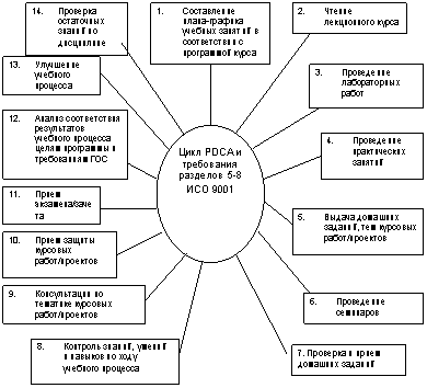 В соответствии с циклом PDCA (цикл Деминга) и требованиями ГОСТ Р ИСО 9001 – 2001 можно выделить следующие составляющие образовательного процесса по учебной дисциплине (рисунок 1).