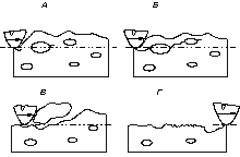 Процесс шлифования износостойких покрытий сопровождается двумя явлениями: объемного разрушения (рисунок 1 а, б) и микрорезания (рисунок 1 в, г).