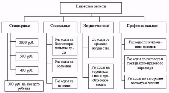 Выделяют следующие виды налоговых вычетов: