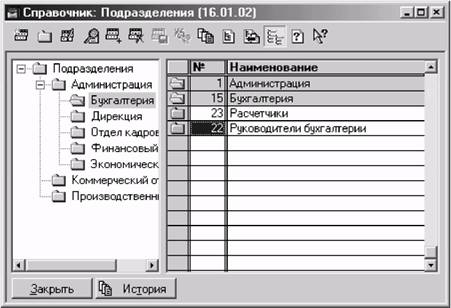 Для ввода "конечного" подразделения нужно сначала "войти" в ту папку (группу), к которой это подразделение относится, затем щелкнуть мышью по пиктограмме Шили выбрать пункт "Новый" меню "Действие".