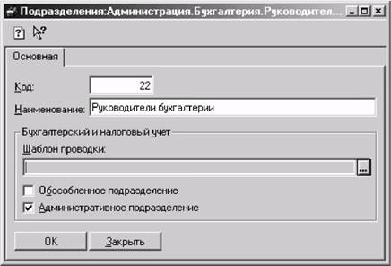 Рис. 3. Форма редактирования элемента справочника "Подразделения"